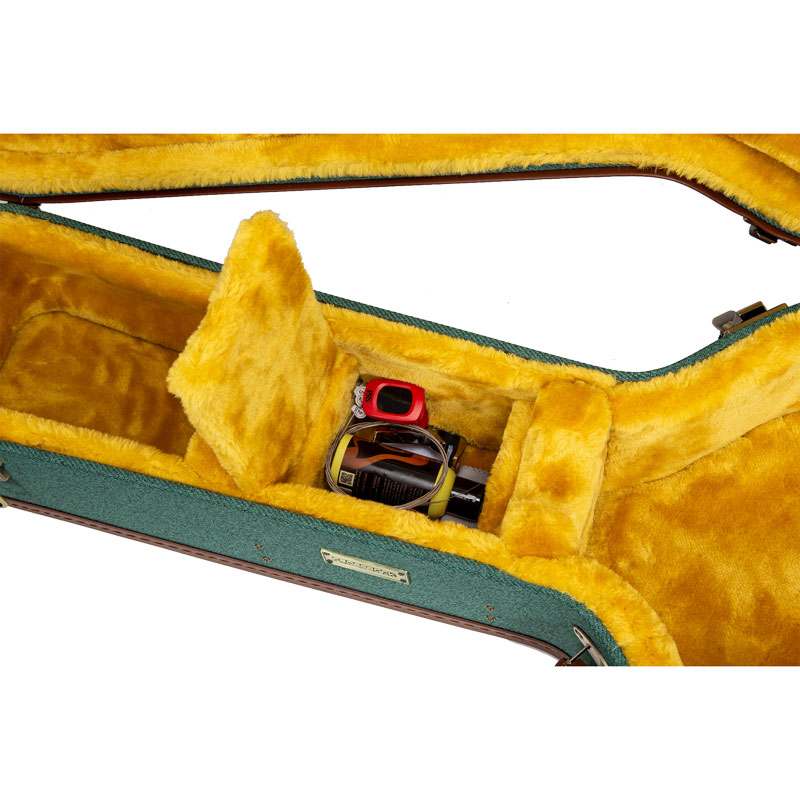 Convenient accessory compartment nestled inside the case for extra guitar picks and strings. Storage is simple and organized.