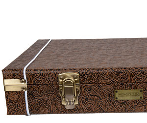 - Heavy-duty plywood core with reinforced leather and metal corners for maximum protection.