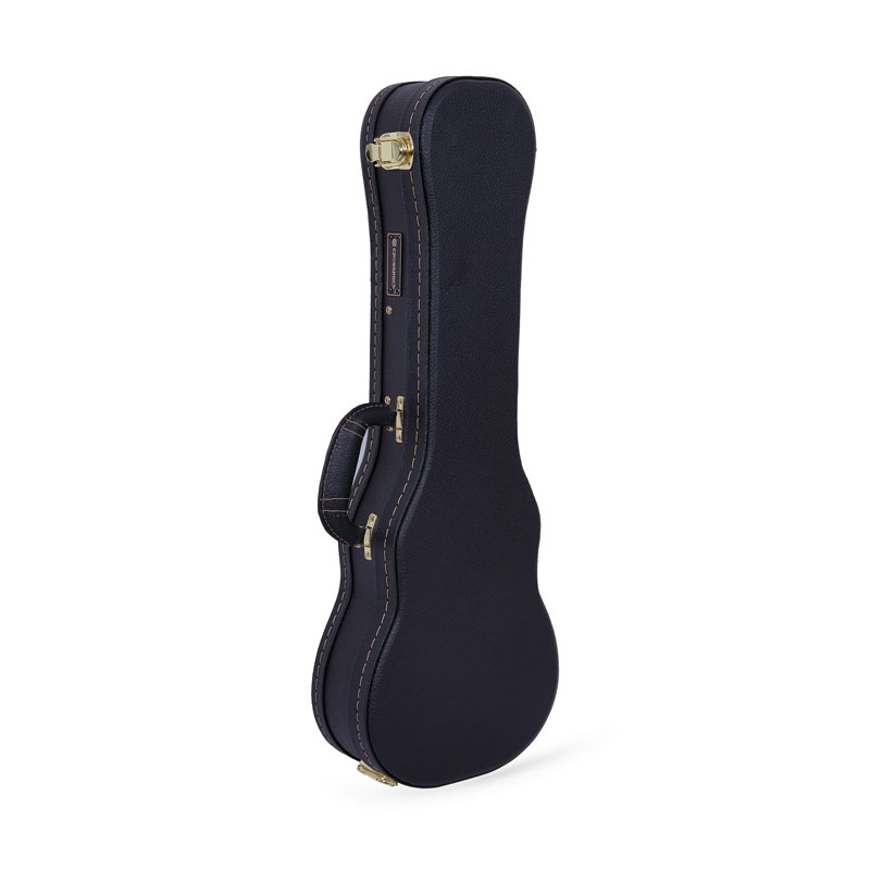 Deluxe  Wood Ukulele Case - CRW620 Series 3 color options: Black case: blue plush inside and golden latches. Tweed case: scarlet plush inside and golden latches. Brown case: scarlet plush inside and golden latches.