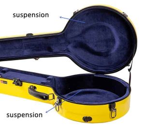The vulnerable back and the bridge of the banjo will NOT touch the case with the thicker padding around it. The suspension design offers better protection to your banjo, especially for the bridge.
