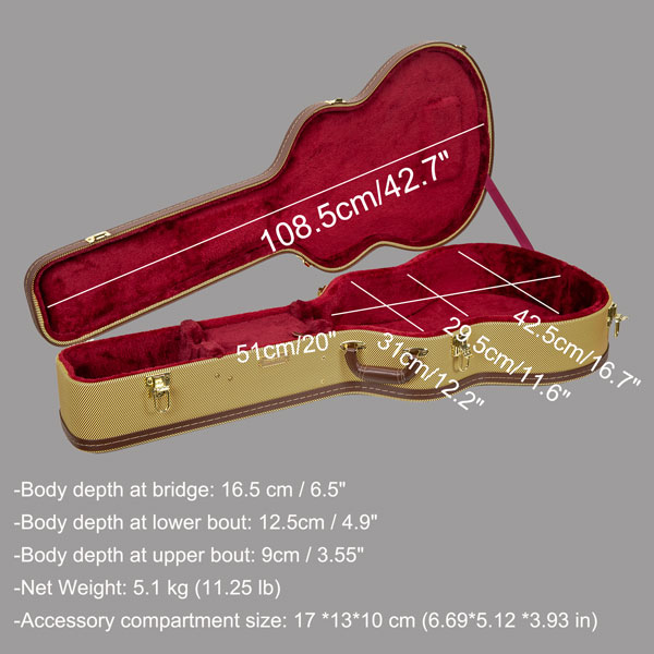 Detailed Overview of the CRW620JA16 Wood Case for ES-125 Hollowbody Archtop Jazz Guitar with 16″ Lower Bout